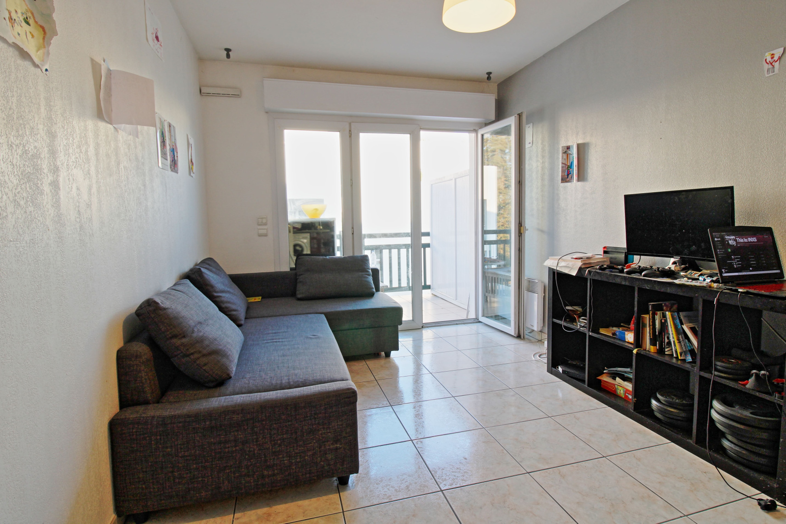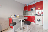 Composé d'une entrée avec placard, d'une pièce de vie avec une cuisine récente réalisée par un menuisier local, le tout donnant sur un balcon de 6m².