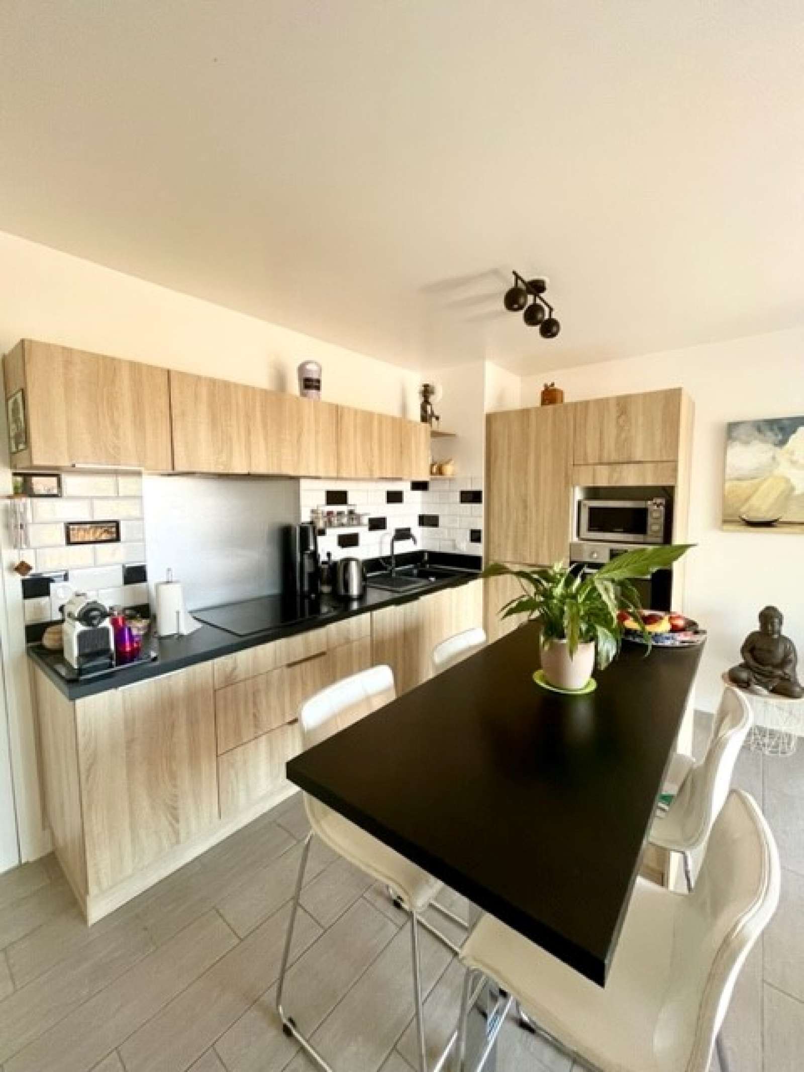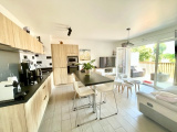 Profitez d'une cuisine entièrement équipée ouverte sur une pièce de vie profitant d’un accès sur une terrasse exposée Sud-Est.