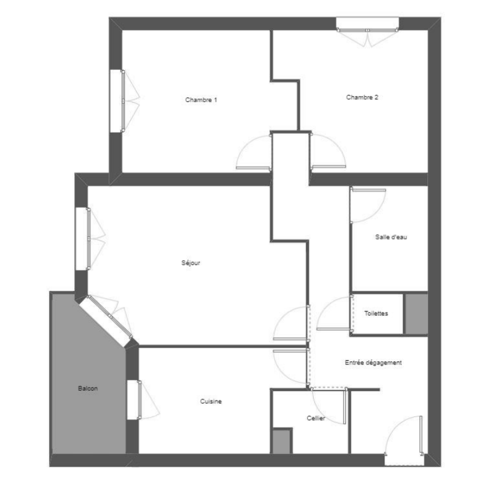 Composé d'une entrée desservant la pièce de vie donnant sur un balcon exposé sud, d’une cuisine équipée ayant elle aussi, un accès sur le balcon ainsi qu’un cellier.