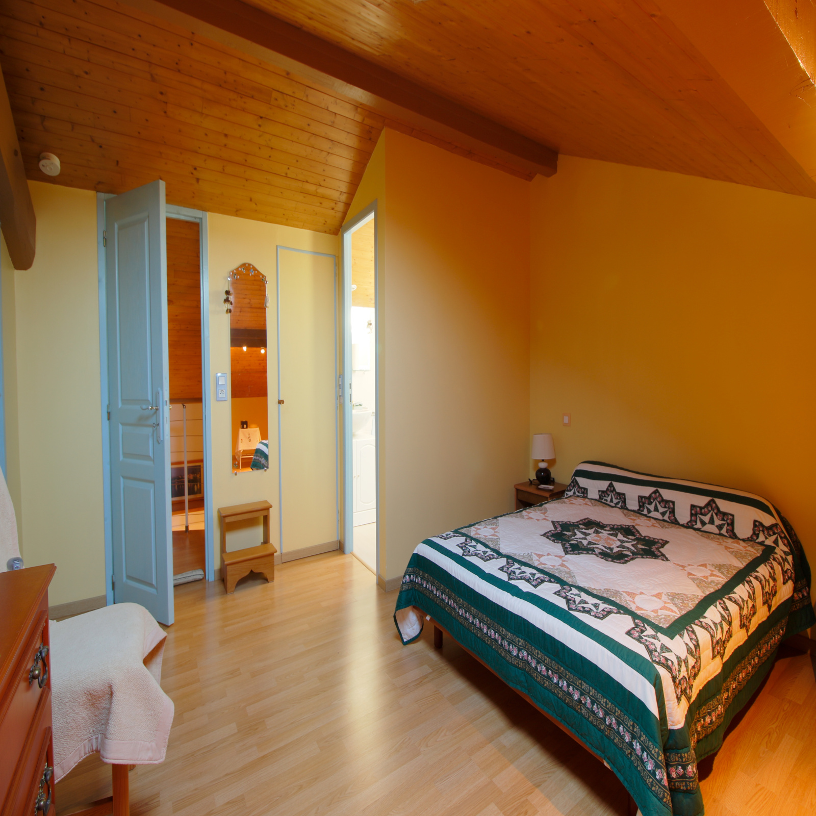 L'étage comprend une spacieuse chambre mansardée, une pièce annexe pouvant faire office de dressing ainsi qu'une salle d'eau avec WC.
