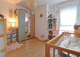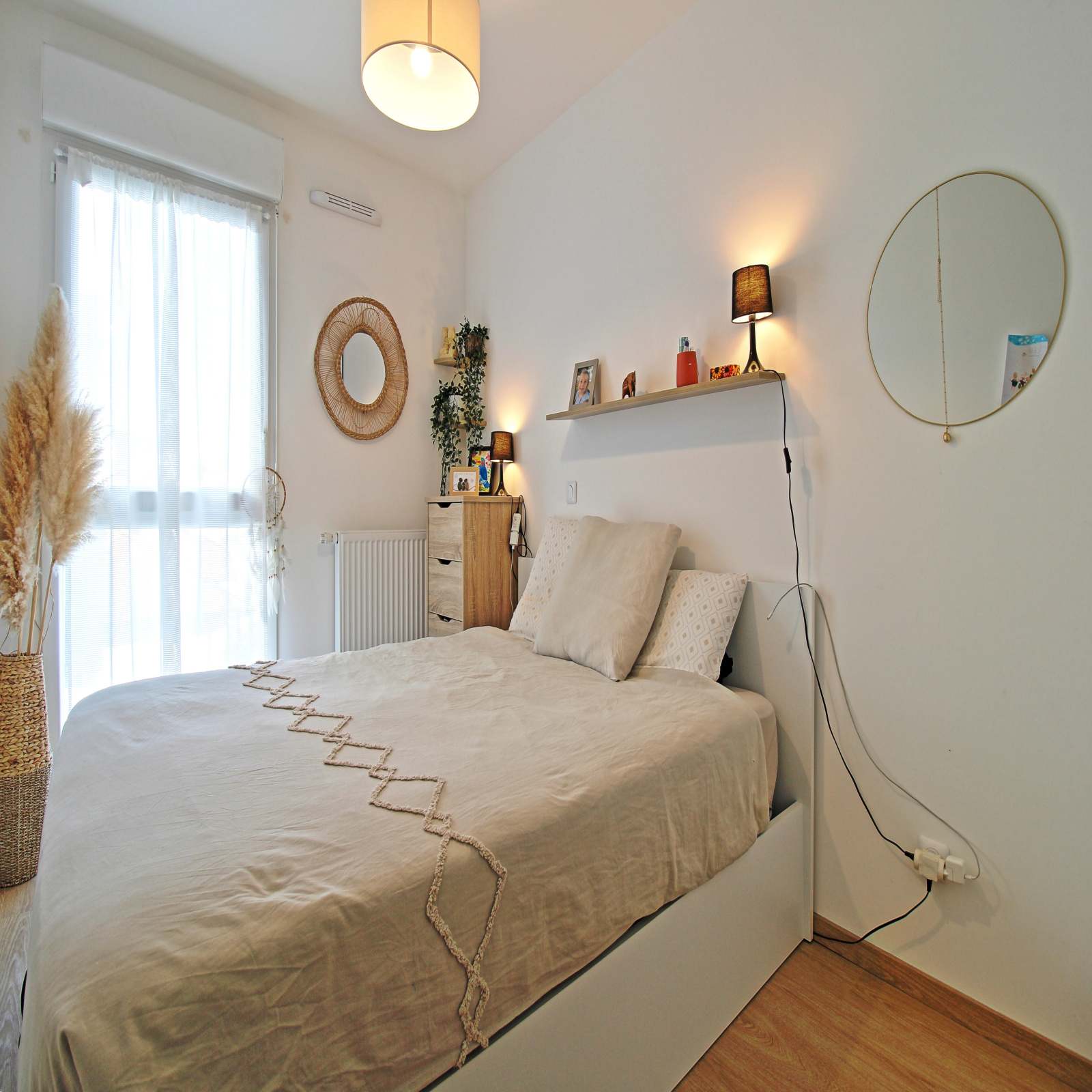L’espace nuit comprend deux chambres, dont l’une est dotée d’un placard intégré pour un rangement optimal, une salle de bain moderne aux finitions soignées et un WC séparé.