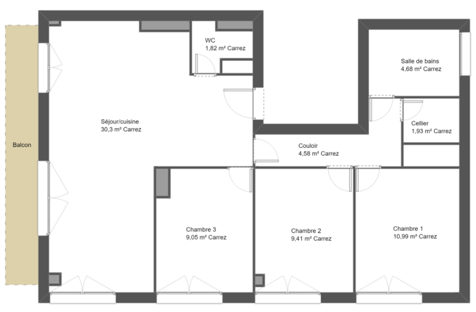 Il se compose d’une entrée desservant une agréable pièce de vie bénéficiant d'un accès au balcon, d'une cuisine entièrement équipée ouverte sur le séjour profitant elle aussi d’un accès au balcon.