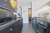 La cuisine équipée bénéficie également d’un accès à une seconde terrasse, elle aussi orientée sud.