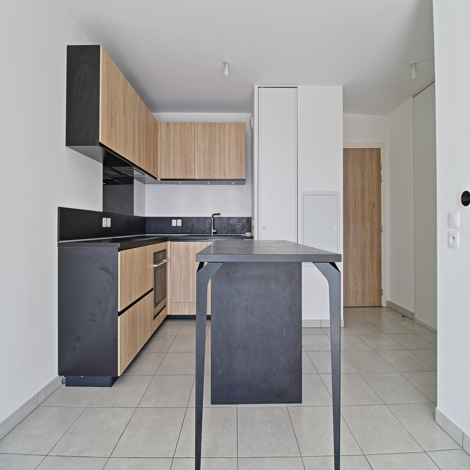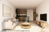 Il se compose d’une entrée avec placard, d’une cuisine aménagée et équipée d'un îlot central, ouverte sur une lumineuse pièce de vie prolongée par une terrasse exposée sud-est.