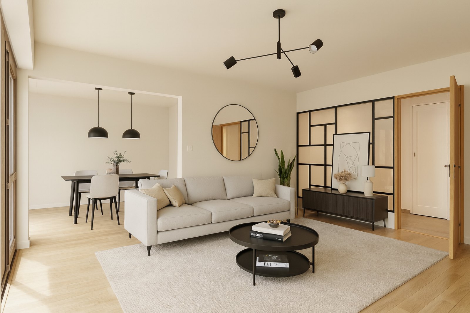 Celui-ci est composé : d'une entrée donnant sur une cuisine équipée avec loggia et accès sur la terrasse, d'un salon lumineux exposé sud avec vue dégagée, actuellement agencé avec deux chambres sans vis à vis, (possibilité 3ème chambre).