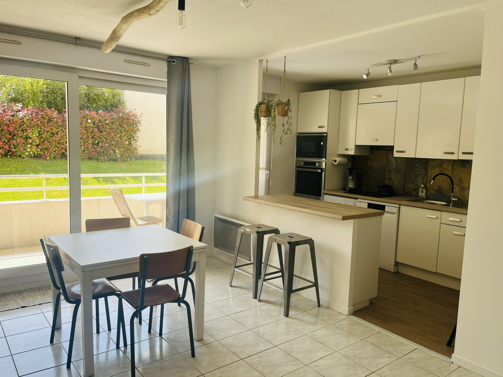 Il se compose d’une belle pièce de vie intégrant une cuisine entièrement équipée. ouvrant sur une terrasse de 12m² plein sud, sans vis-a-vis.