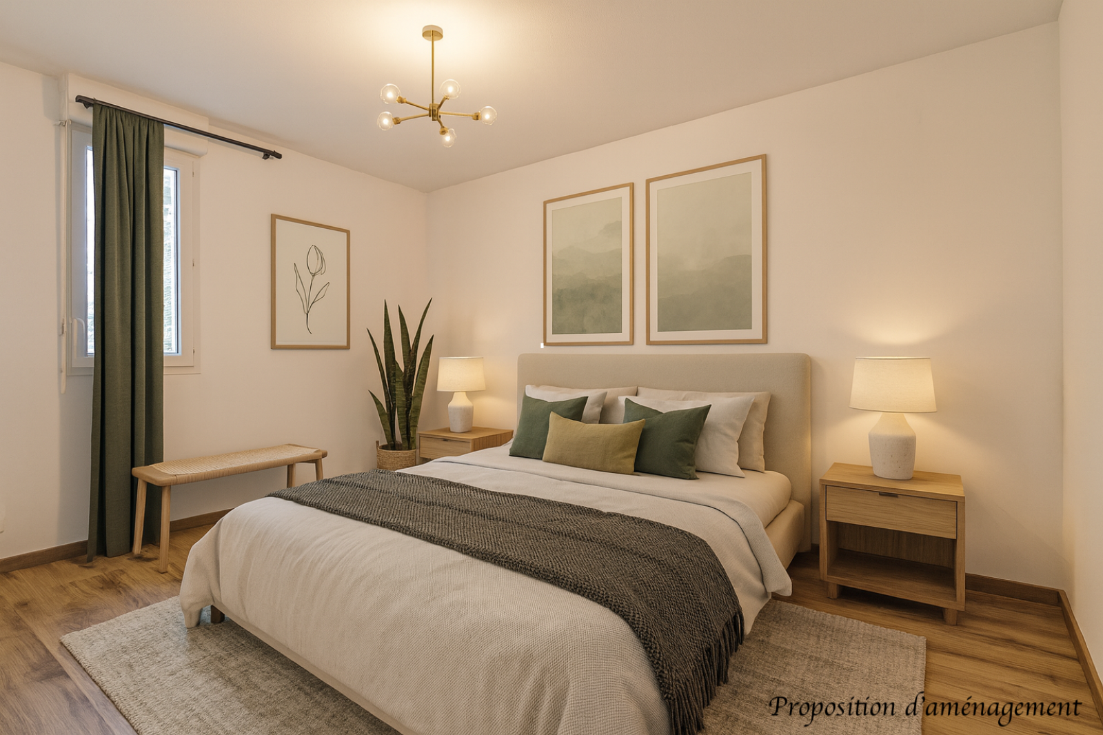 L’espace nuit comprend une chambre avec placard ainsi qu’une salle d’eau avec WC.