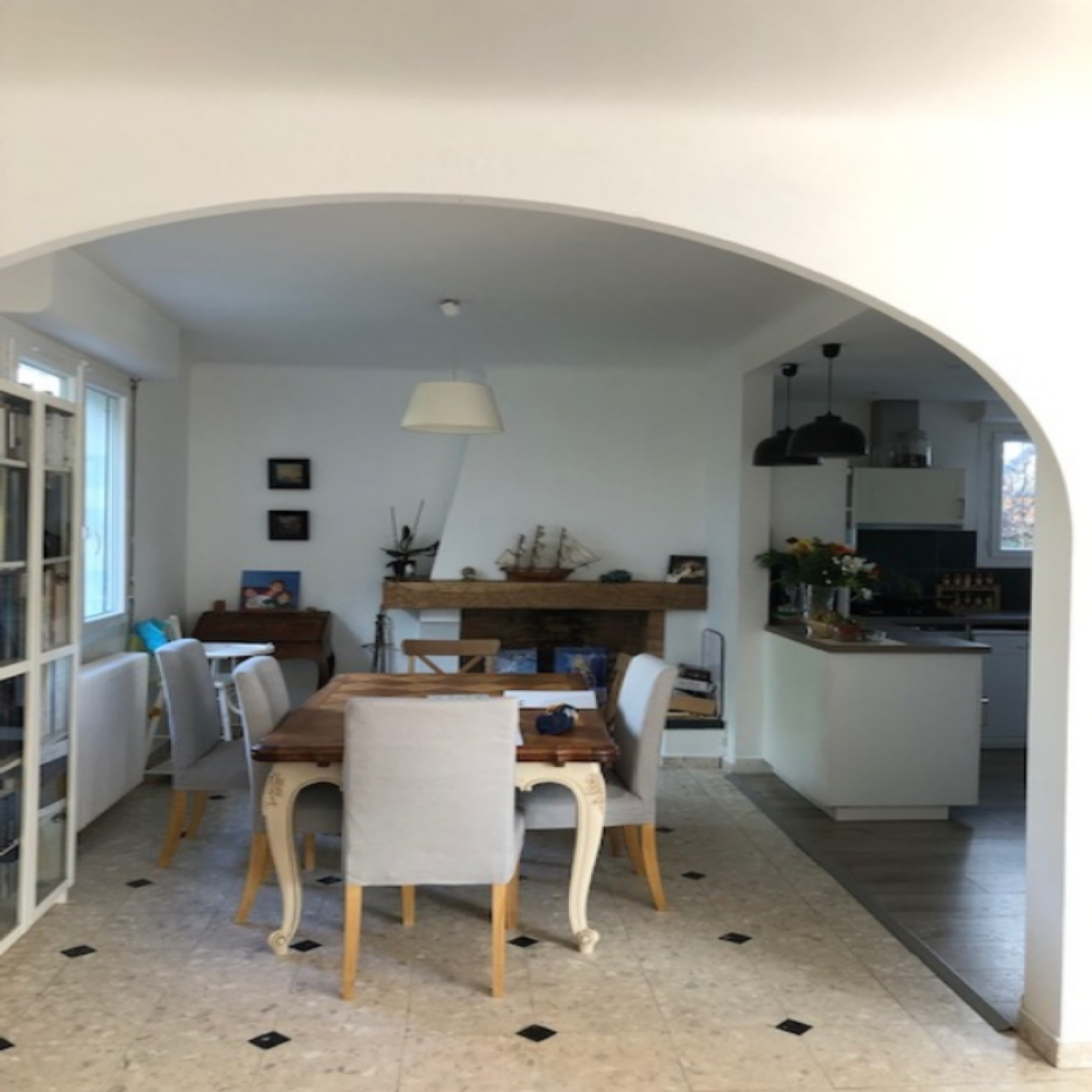 Découvre cette maison chaleureuse totalement rénovée en 2016, d'environ 139m2 avec un beau séjour donnant sur la terrasse et le jardin ainsi que la salle à manger avec sa cuisine semie-ouverte .