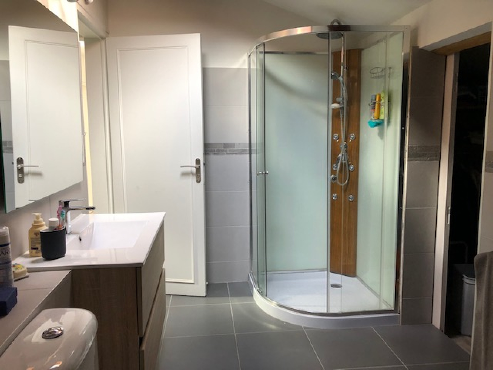 A l'étage, vous trouverez 3 chambres, un bureau et deux salles de bains ainsi que 2 WC dont 1 séparé.