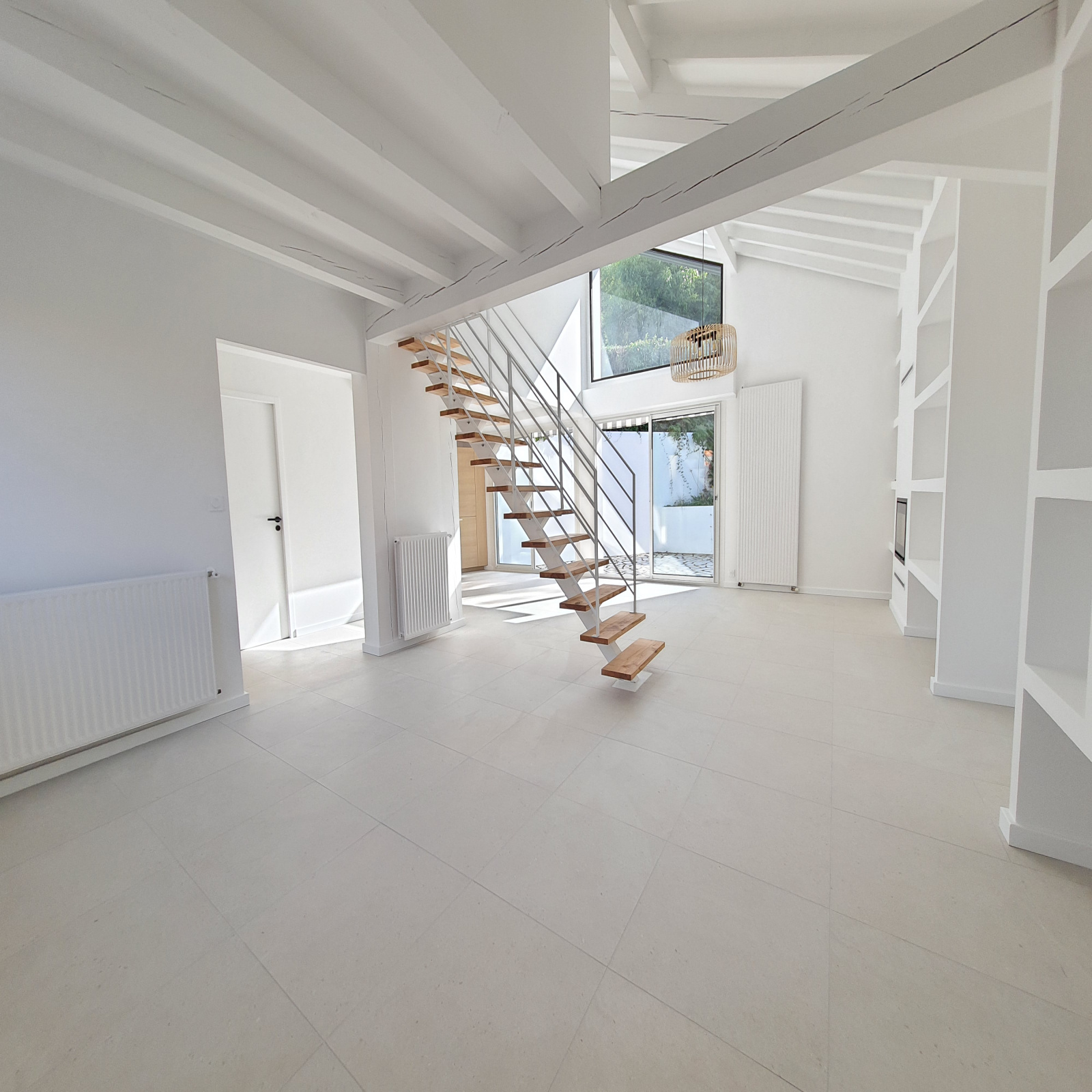 Dès l’entrée, vous serez charmé par un espace de vie lumineux de plus de 50m² avec une cheminée, comprenant une cuisine moderne entièrement équipée et aménagée avec un îlot central, ouverte sur un séjour spacieux. La grande baie vitrée offre un accès direct à une terrasse de 20m² ensoleillée grâce à son exposition sud-ouest.