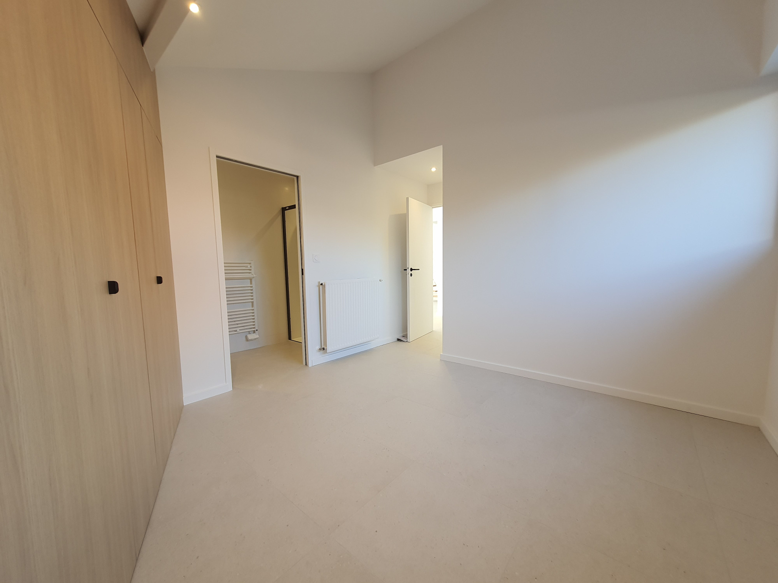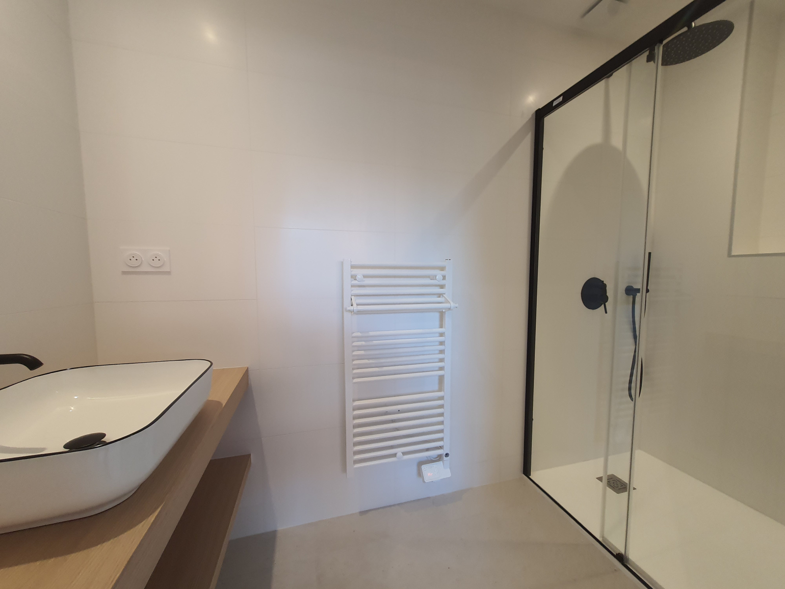La maison dispose d’une suite parentale avec tout un linéaire de placard sur-mesure ainsi qu'une salle de douche attenante, puis, un WC indépendant.