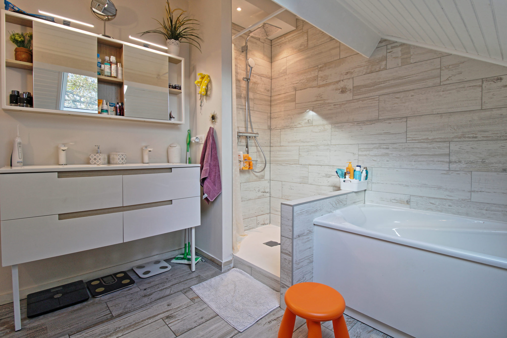 L’étage propose 3 chambres dont une avec sa salle d’eau attenante, une autre salle d’eau, un WC séparé et une superbe suite parentale avec baie à galandage, dressing, salle de bain et douche.