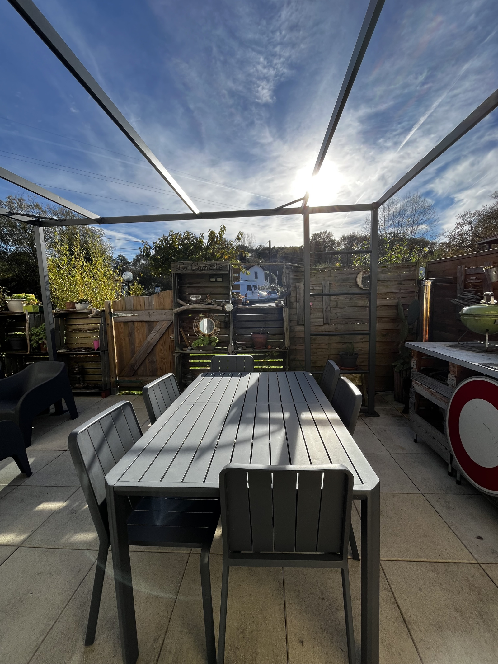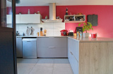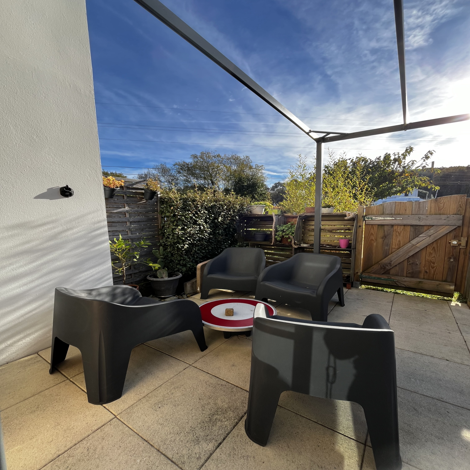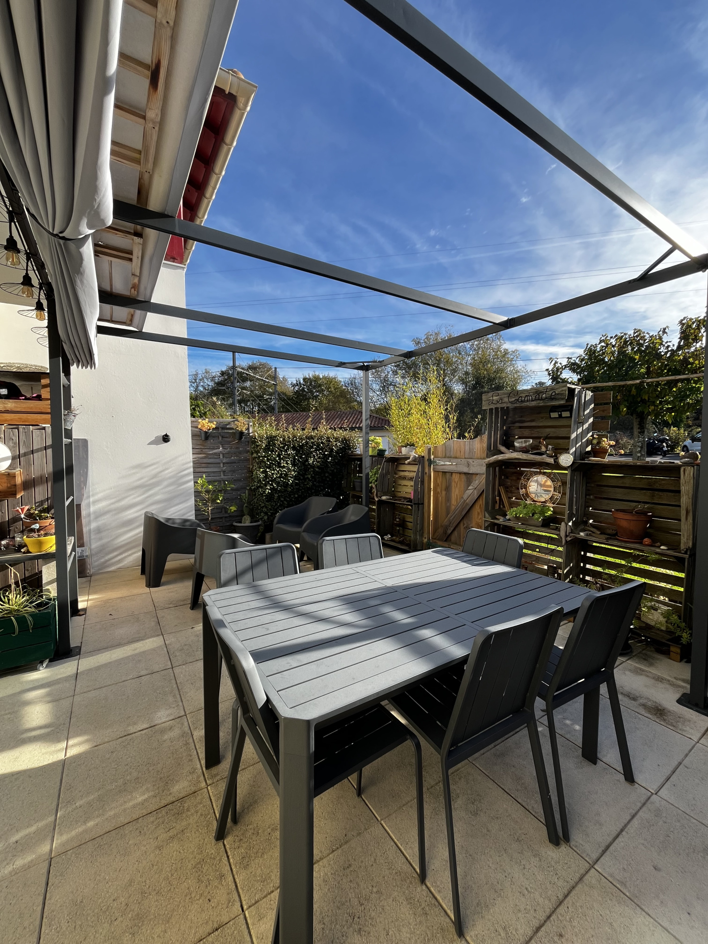 Au rez-de-chaussée, une entrée dessert les différentes pièces : une cuisine entièrement équipée, ouverte sur une pièce de vie comprenant un salon et un espace salle à manger. L’ensemble se prolonge sur une belle terrasse d’environ 30 m², exposée plein sud, idéale pour profiter du soleil. Un WC complète également ce niveau.