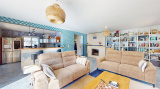 Le rez-de-chaussée s’organise autour d’une pièce de vie conviviale d’environ 34 m² avec cuisine ouverte, prolongée par une véranda chauffée de plus de 25 m², véritable extension de l’espace de vie pouvant accueillir salle à manger ou salon d’hiver.