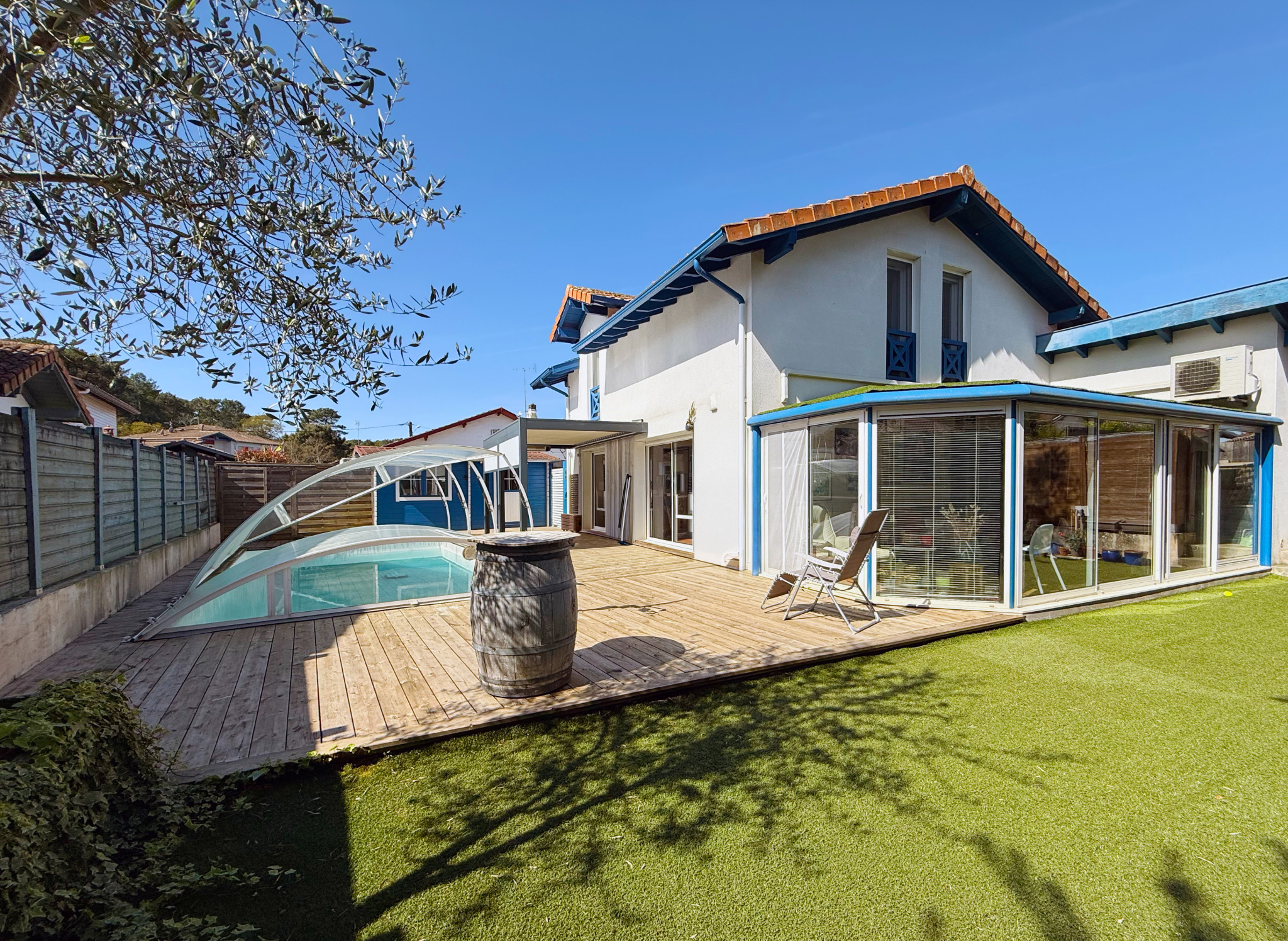 Idéalement située dans le quartier prisé de Blancpignon à Anglet, dans un environnement résidentiel calme, cette maison individuelle Iguski construite en 2003 développe environ 150 m² habitables sur une parcelle de 500 m².