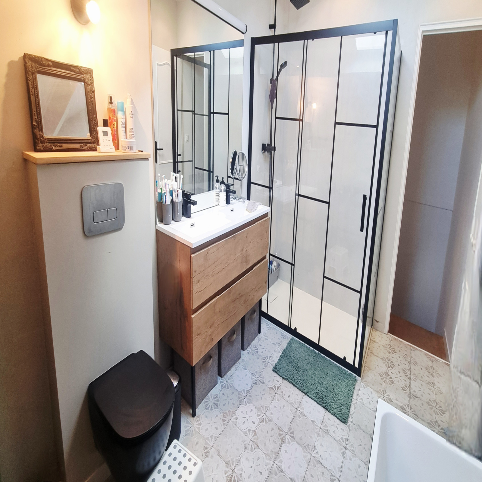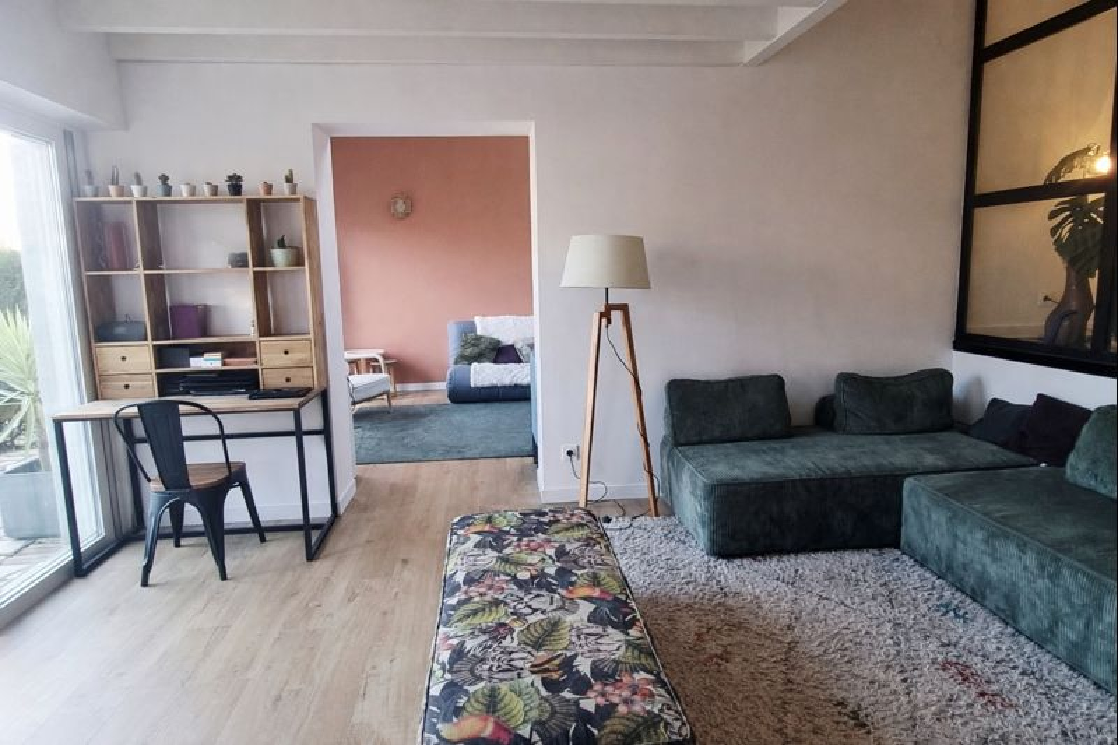 L’entrée ouvre sur une pièce de vie agréable et lumineuse, composée d’un salon ainsi que d’un second espace modulable pouvant accueillir un bureau, un coin détente ou une chambre en rez-de-chaussée selon vos besoins.