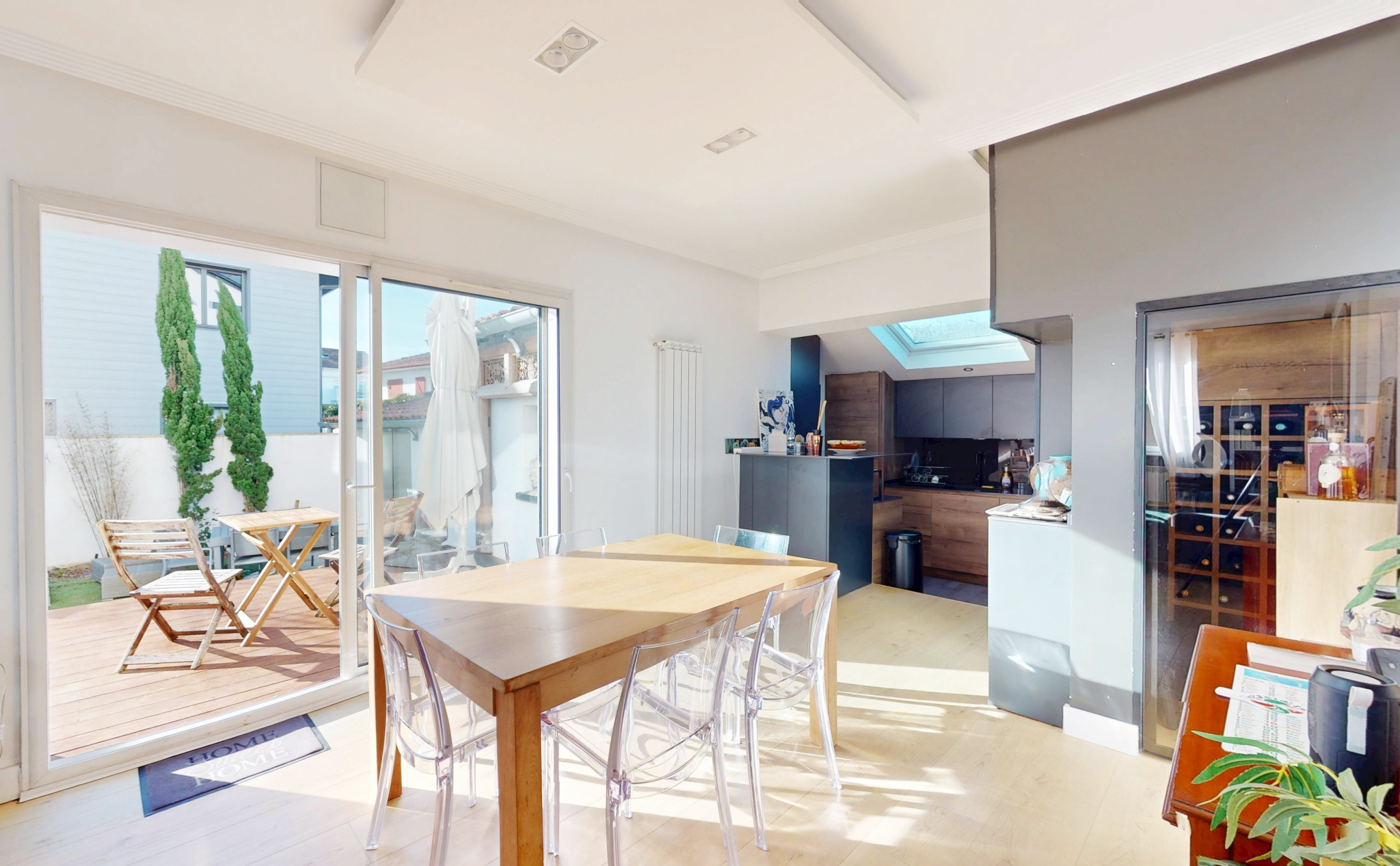 Vous profiterez au rez-de-chaussée d'une vaste pièce de vie lumineuse avec possibilité d'installer une cuisine ouverte, donnant accès à une terrasse et un jardin privatif. WC invité au rez-de-chaussée.