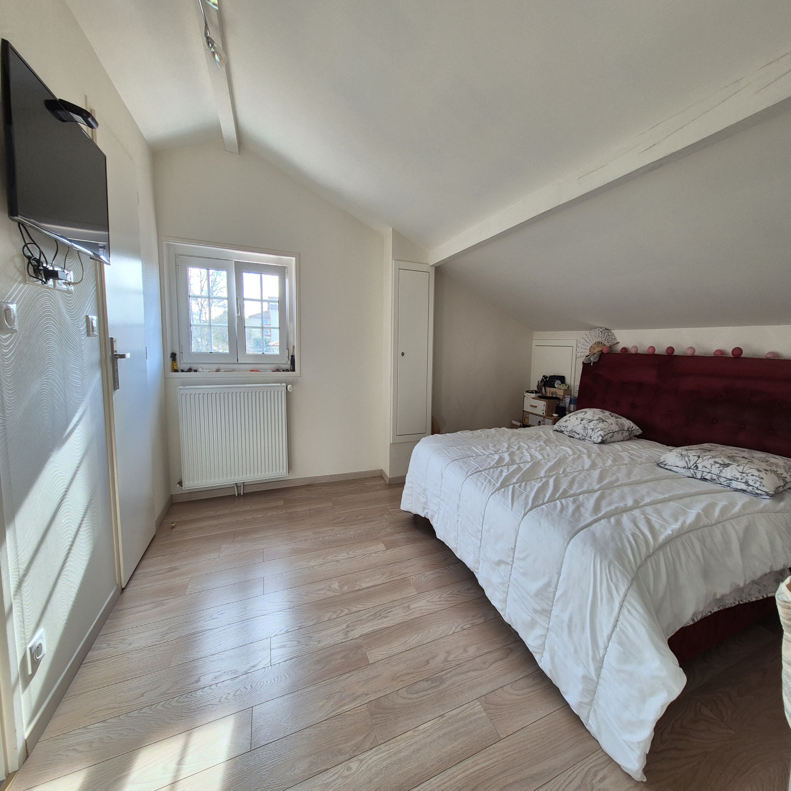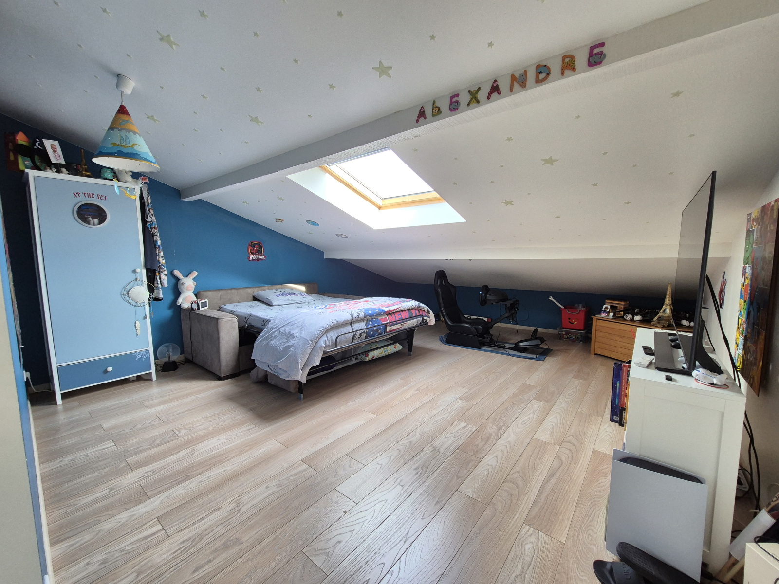Au second étage, vous trouverez deux chambres mansardées ainsi qu’une suite parentale avec dressing et salle d’eau avec WC.