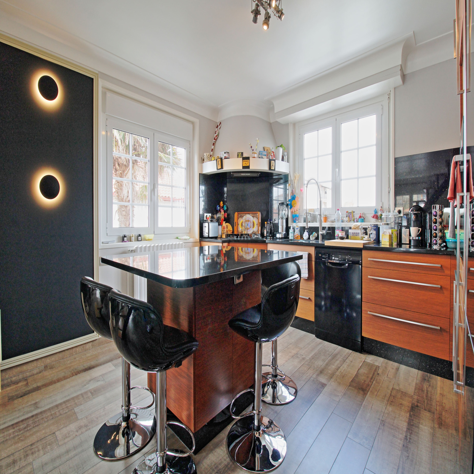 Aujourd’hui organisée sur trois niveaux, elle propose au 1er étage un espace de vie d’environ 40 m² en très bon état, avec cuisine aménagée et équipée ouverte sur le séjour, équipé d’un poêle à bois et donnant sur un balcon exposé sud.