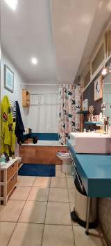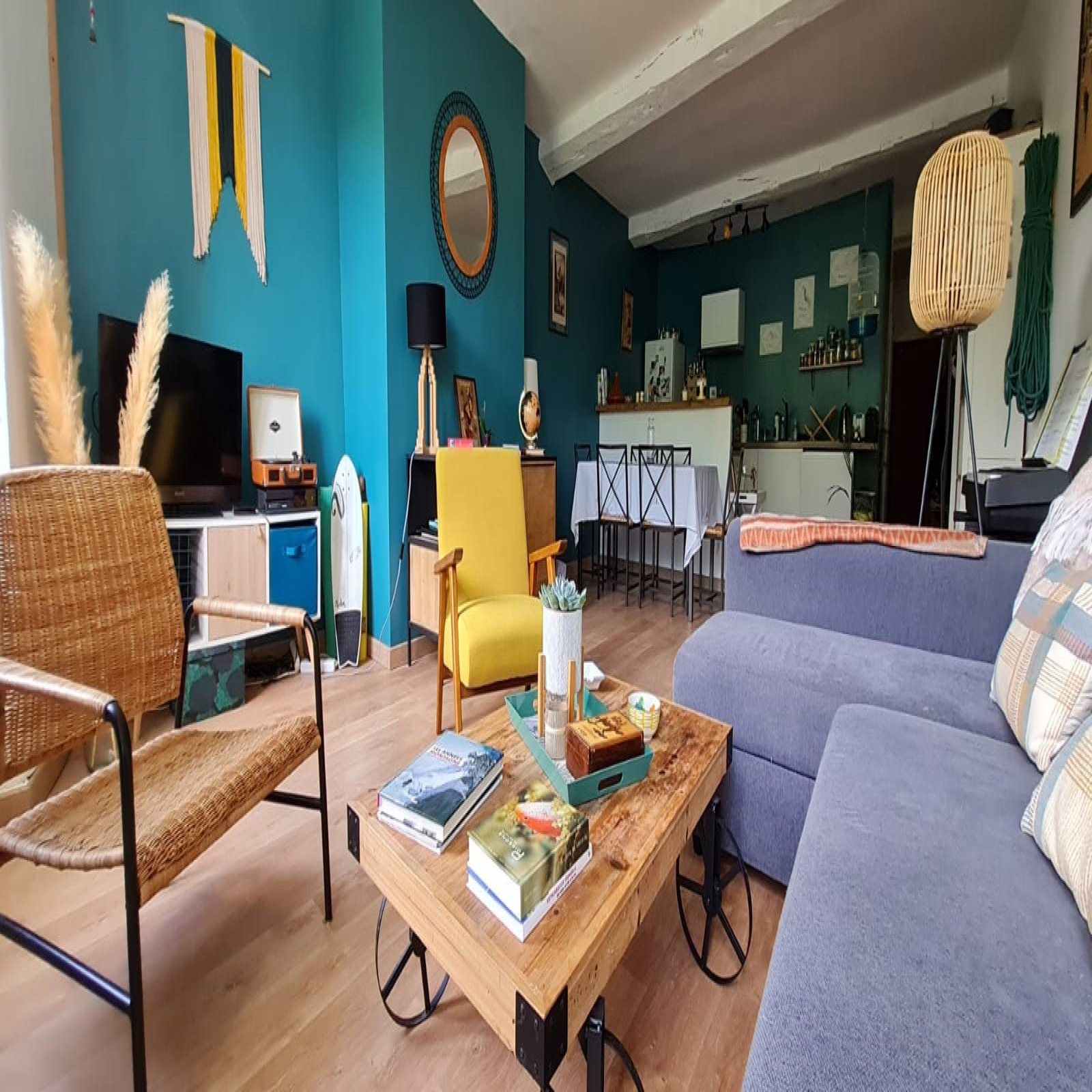 Découvrez sa belle pièce de vie lumineuse de plus de 35m2 et sa cuisine américaine entièrement équipée. Une salle de bain, WC, un cellier pour du stockage et une chambre avec placards. Faibles charges de copropriété.