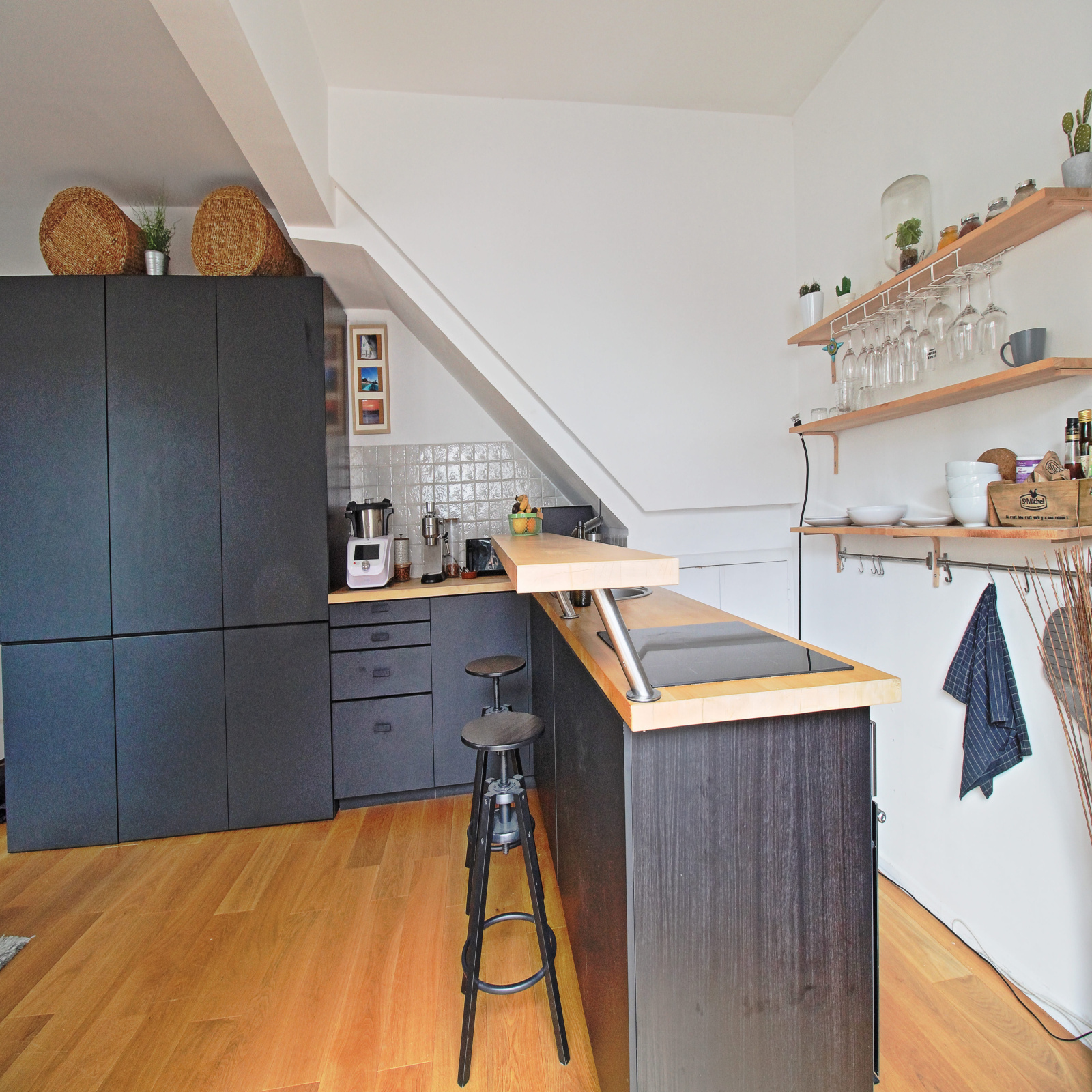 Donnant sur l'arrière de la maison, l'appartement parfaitement agencé, très lumineux par ses grandes fenêtres et son exposition Sud-Ouest. Vous profiterez d'un balcon avec une vue dégagée donnant sur un palmier et les toits des maisons, à l'abri des regards et au calme. Séjour de 24m2 environ avec cuisine américaine entièrement équipée.