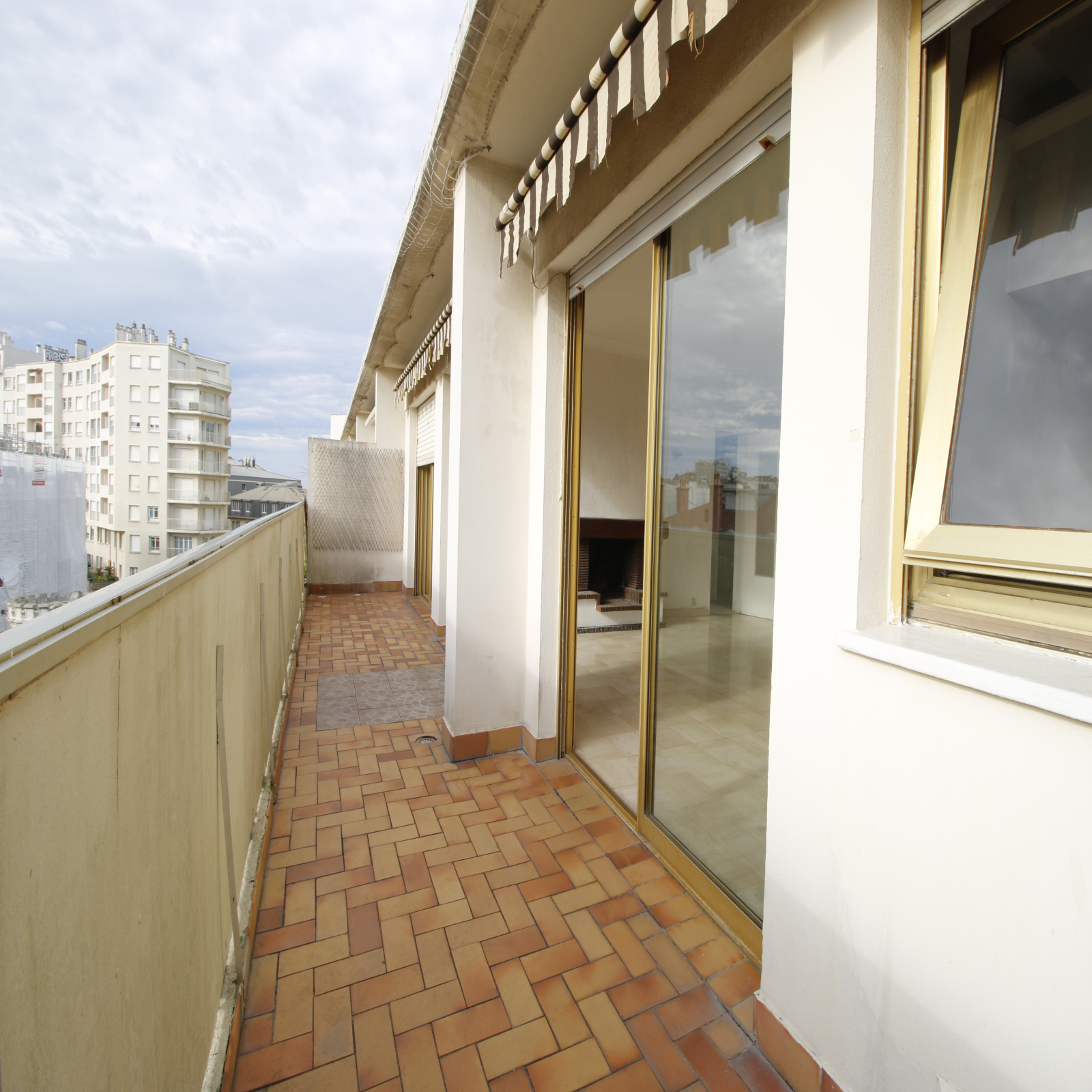 Quartier Impérial - Au dernier étage d'une résidence sécurisée de bon standing avec ascenseur, appartement T2 transversant de plus de 60 m² bénéficiant de 49 m² de terrasses, deux caves et garage en sous-sol.
