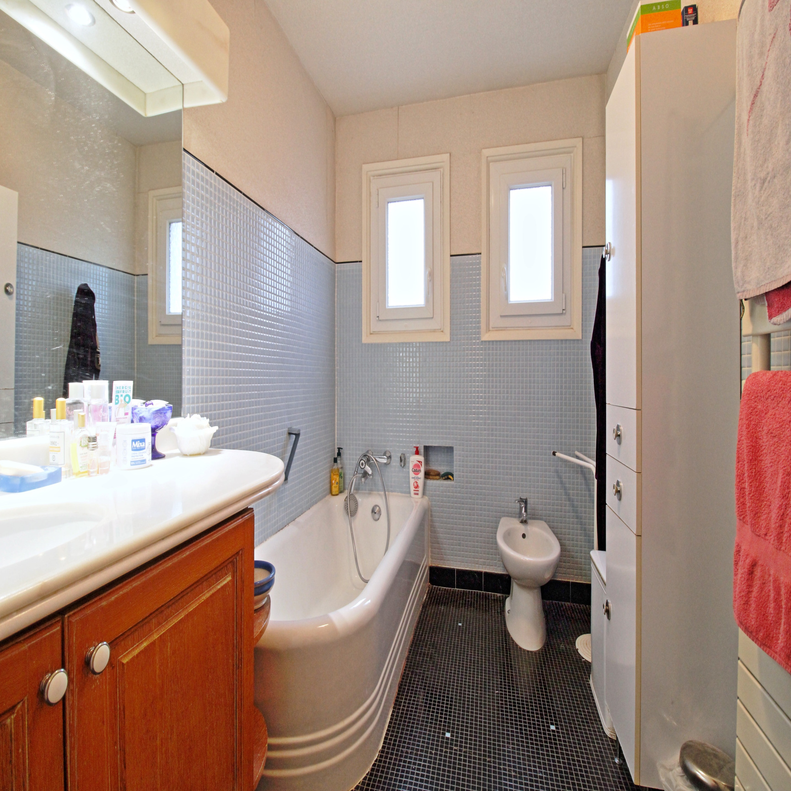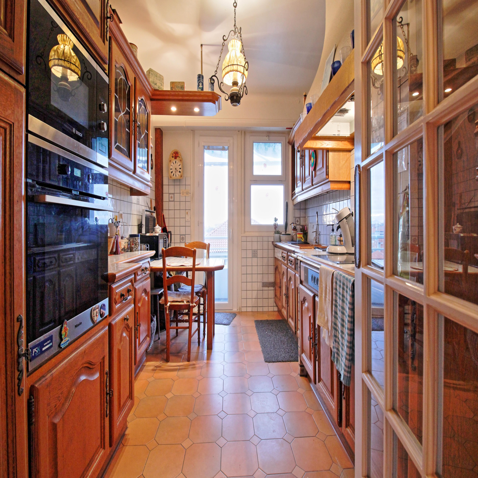 L’appartement est très lumineux et offre un bel agencement et de beaux volumes. Possibilité de créer une 3ème chambre aisément. Double vitrage partout, volets roulants électriques, chauffage individuel au gaz , une modernisation est à prévoir.