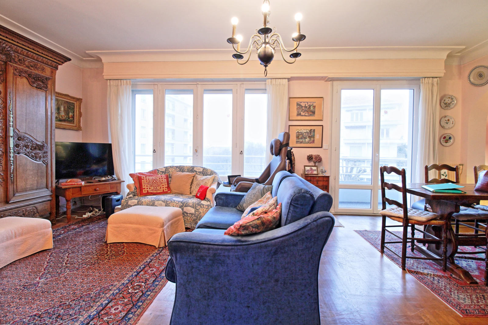 Au sein d’une résidence sécurisée, de bon standing avec parc, au 3ème étage sur 4 avec ascenseur, appartement de plus de 103m² traversant.
