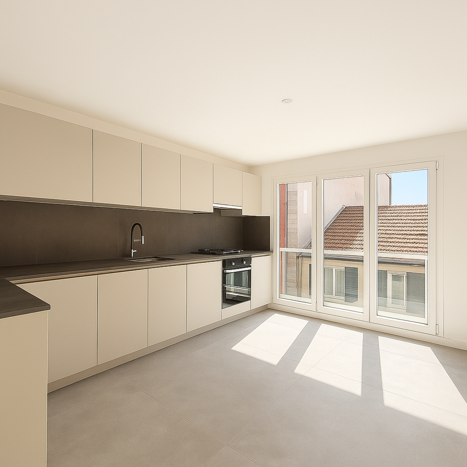 Le niveau principal accueille une vaste pièce de vie prolongée par un balcon, parfaite pour des séjours agréables, ainsi qu’une cuisine indépendante, fonctionnelle et adaptée à un usage ponctuel comme régulier.