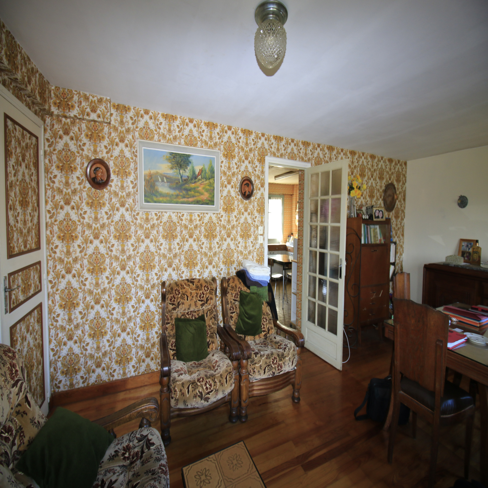 L'étage bénéficiant d'une belle hauteur sous plafond est desservit par deux escaliers (un intérieur et un second extérieur) et se compose d'un salon séjour donnant sur balcon, d'une cuisine séparée, de trois chambres de belles tailles ainsi qu'une salle de bain et un WC invité.