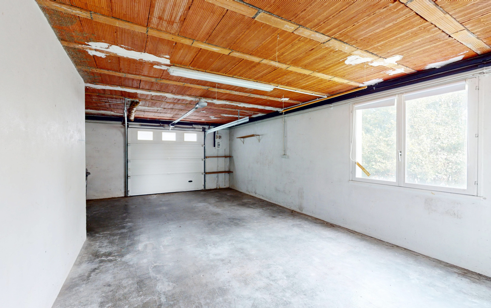 Le rez de jardin propose deux grandes pièces de 15 et 24 m2 pouvant faire office de chambres ou bureaux selon vos besoins, une salle d'eau et un espace chaufferie pouvant être repensé en buanderie ou cave par exemple. En complément de ce niveau, un garage de plus de 30 m2 avec porte motorisée.